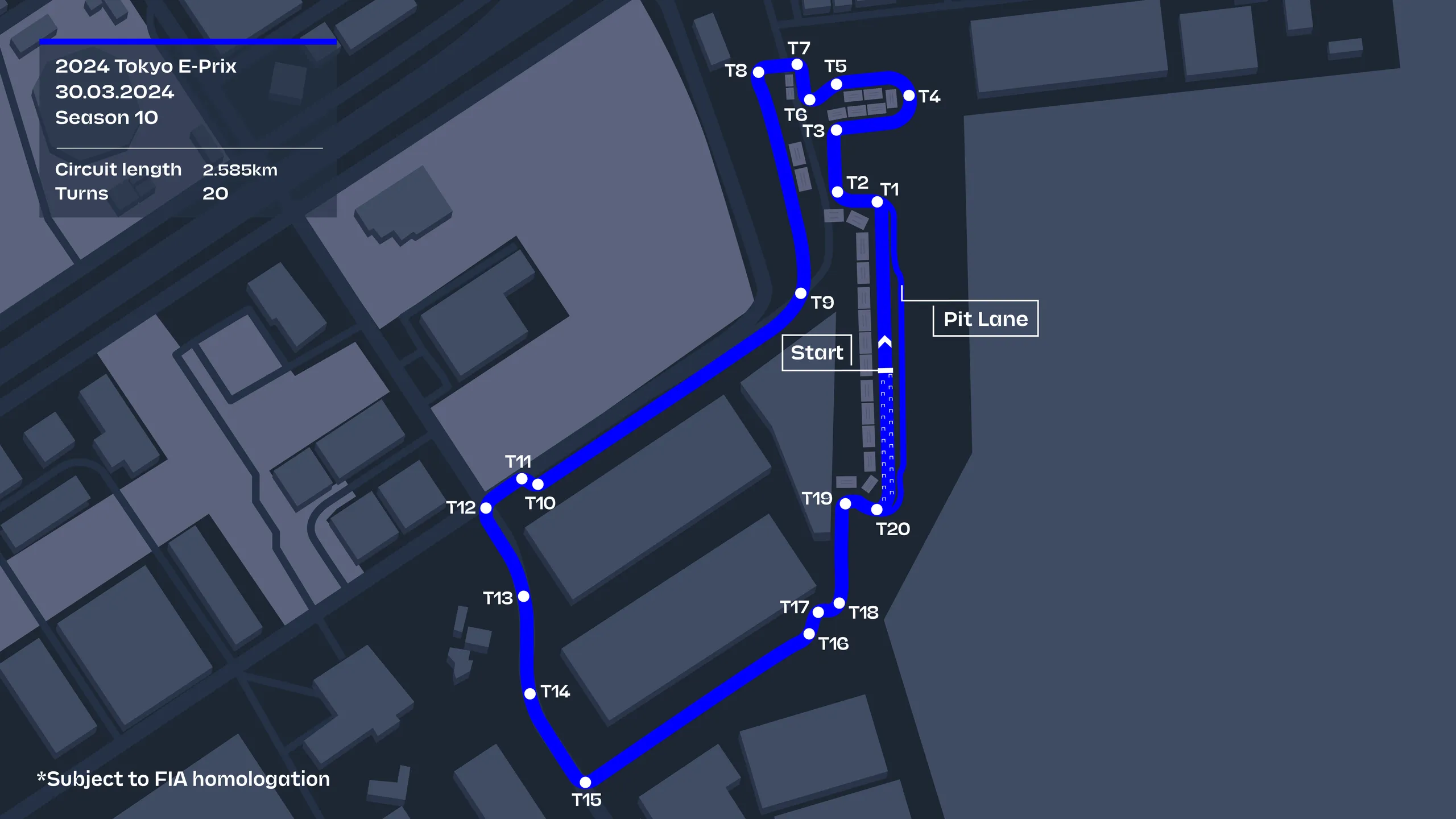 Tóquio recebe pela primeira vez corrida sancionada pela Federação Internacional do Automóvel (FIA). Fá-lo num circuito citadino com 2,585 km e 20 curvas na zona do Tokyo Big Sight, centro de exposições a poucos minutos do centro da cidade. A lotação encontra-se esgotada há muitas semanas, devido à expectativa originada por este ePrix com 33 voltas programado para a madrugada de sábado (6.03 horas em Portugal Continental) – antes, às 1.20 horas, realiza-se a qualificação.