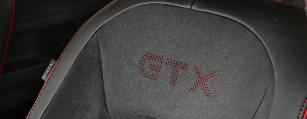 Os bancos podem ser melhorados com revestimentos em Art Velours Eco em preto, com um novo padrão em diamante e pespontos contrastantes em vermelho. Esta característica é também aplicada no volante multifunções com a designação GTX também exposta em cromado.