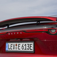 Chegado agora a Portugal, o modelo apresenta-se apenas no formato de berlina e tem dimensões generosas: 4,921 m de comprimento, 1,890 m de largura e 1,491 m de altura. A aerodinâmica teve impacto determinante no desenho. Destaque para a grelha dianteira completamente tapada com assinatura luminosa específica, os faróis LED, as jantes de 19’’ e os farolins com quatro semicírculos evocativos do desportivo RX-7. Também na traseira, “spoiler” ativo eleva-se a partir dos 90 km/h (pode controlar-se manualmente). Existem oito cores exteriores.