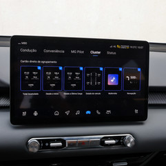 O sistema divide-se em submenus – Climatização, Conveniência, MG Pilot, Cluster e Status –, dando acesso rápido a várias funções, nomeadamente modos de condução, regeneração de energias nas desacelerações e travagens, assistentes de segurança ou informações sobre o funcionamento do sistema de propulsão. Causa-nos estranheza, porém, a utilização de alguns termos, como “frenagem” (correto, mas pouco comum) ou construções frásicas (como “Me seguir para casa”). Esperemos por atualização de “software” OTA (acrónimo de “Over-The-Air”, ou realizada remotamente)!